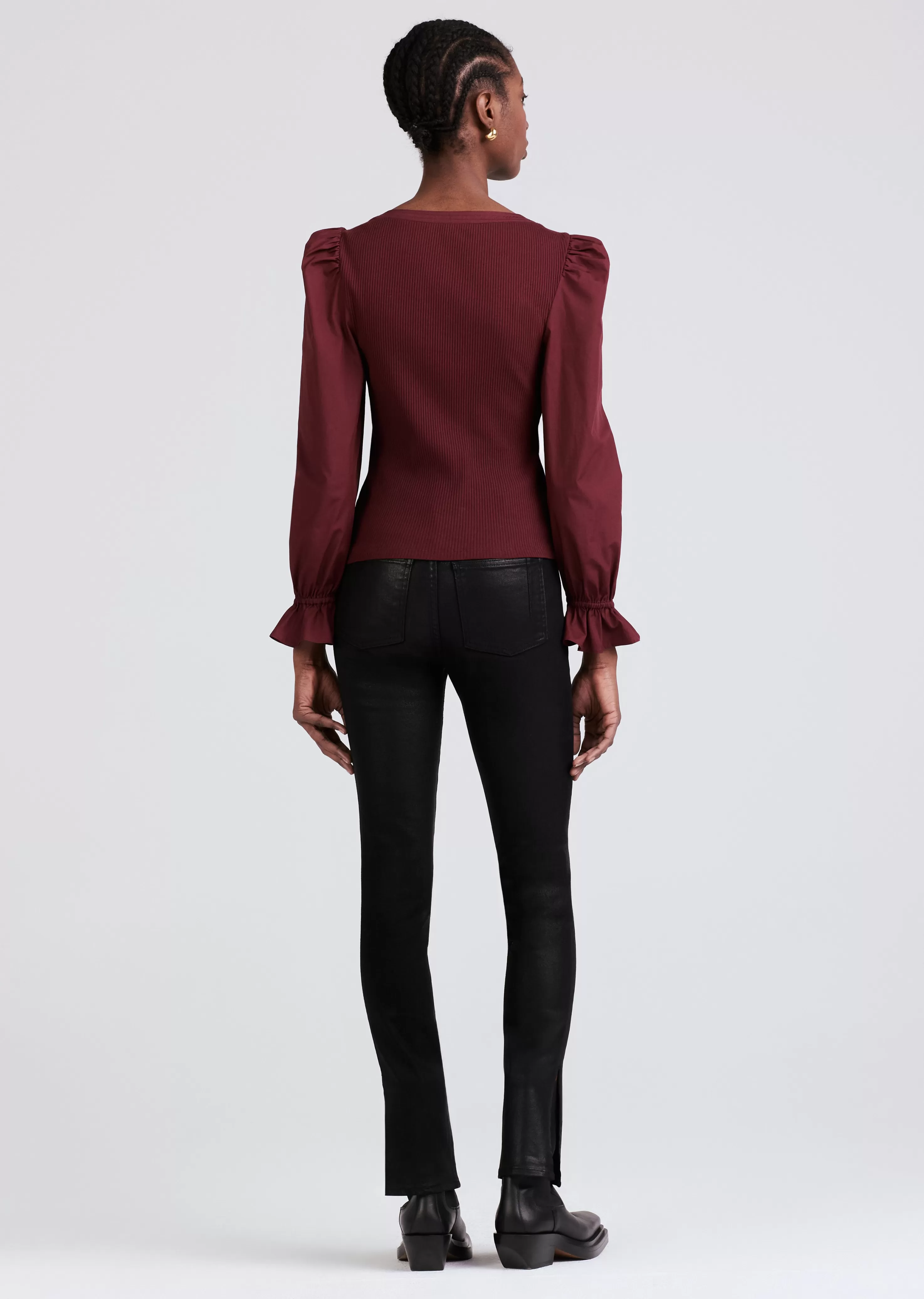 Derek Lam Aishah Scoop Neck Long Sleeve Ribbed Top Burgundy Best Sale