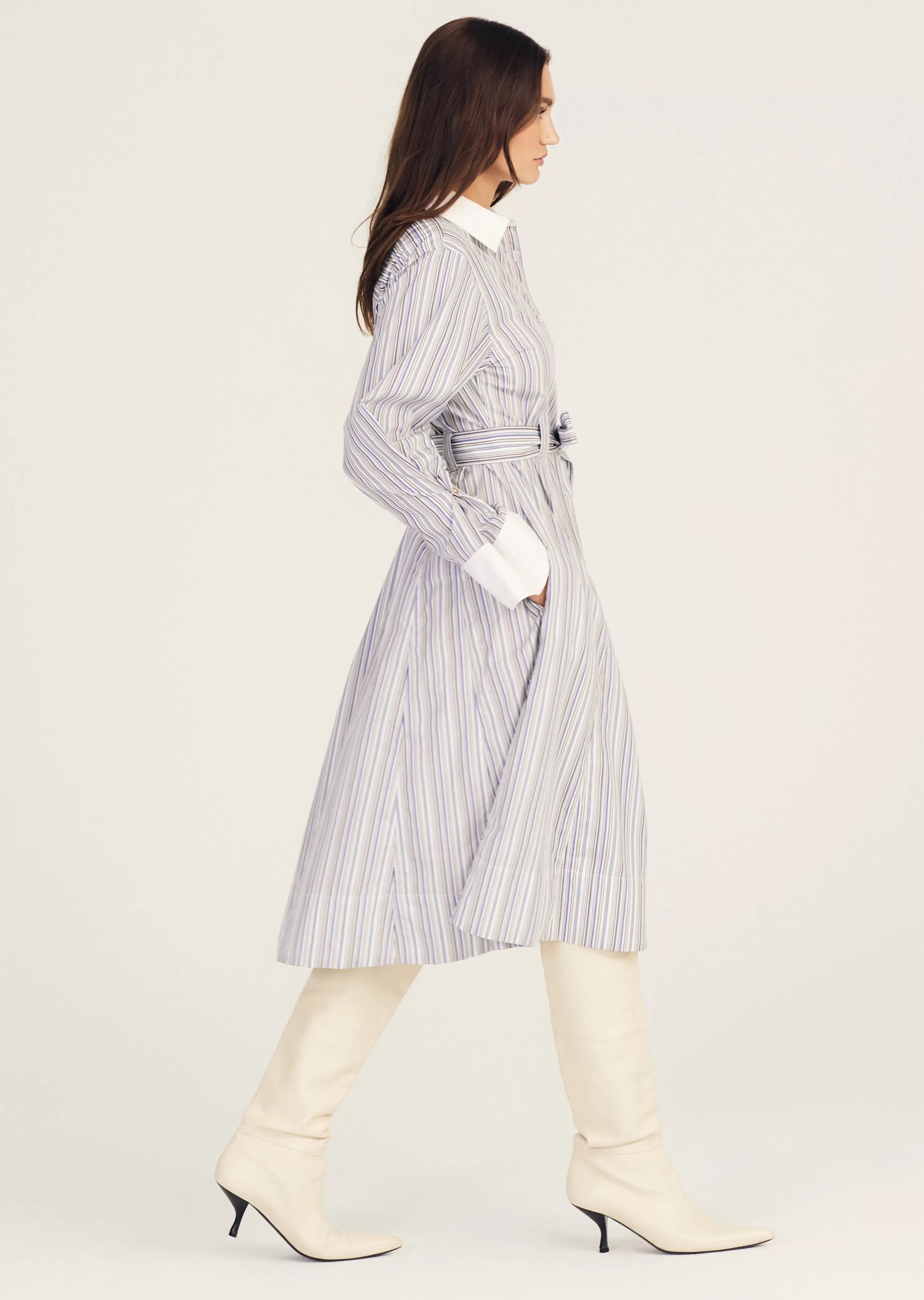 Derek Lam Alana Long Sleeve Shirt Dress Seinebluemulti Outlet