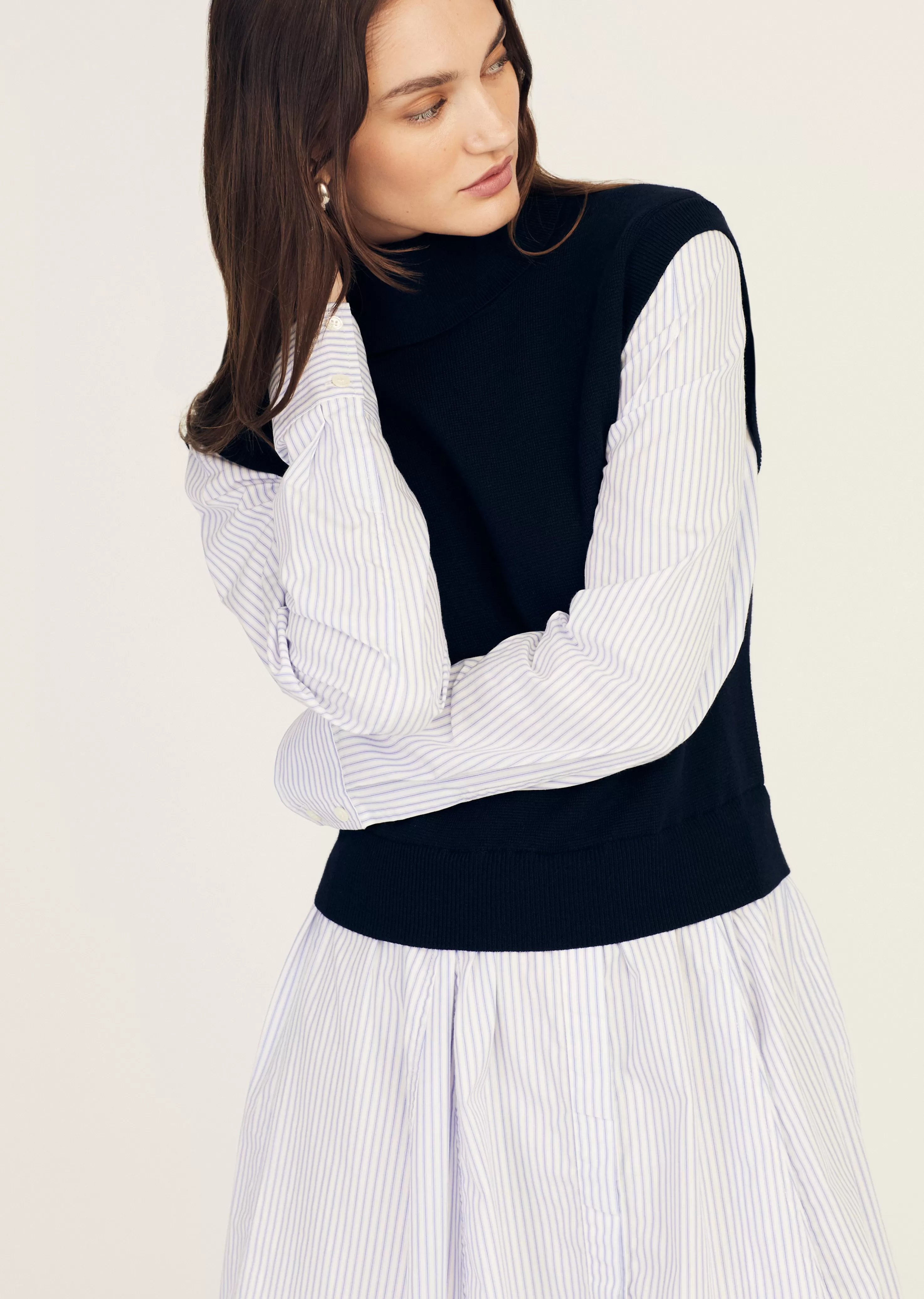 The Cressida Mixed Media Dress is a pre-styled look crafted from soft cotton poplin and merino wool. It features a turtleneck and wears as a full look effortlessly.