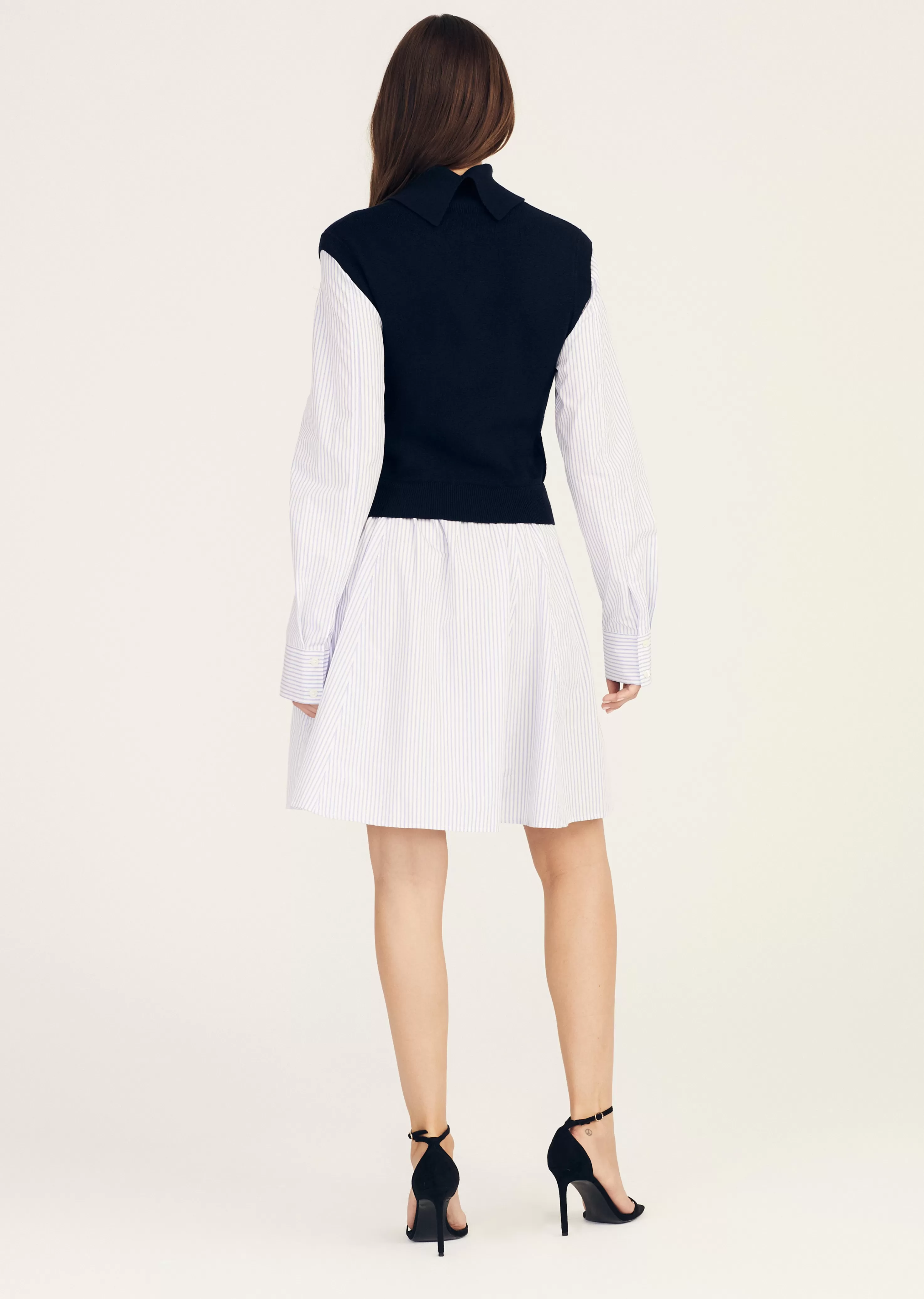 The Cressida Mixed Media Dress is a pre-styled look crafted from soft cotton poplin and merino wool. It features a turtl…