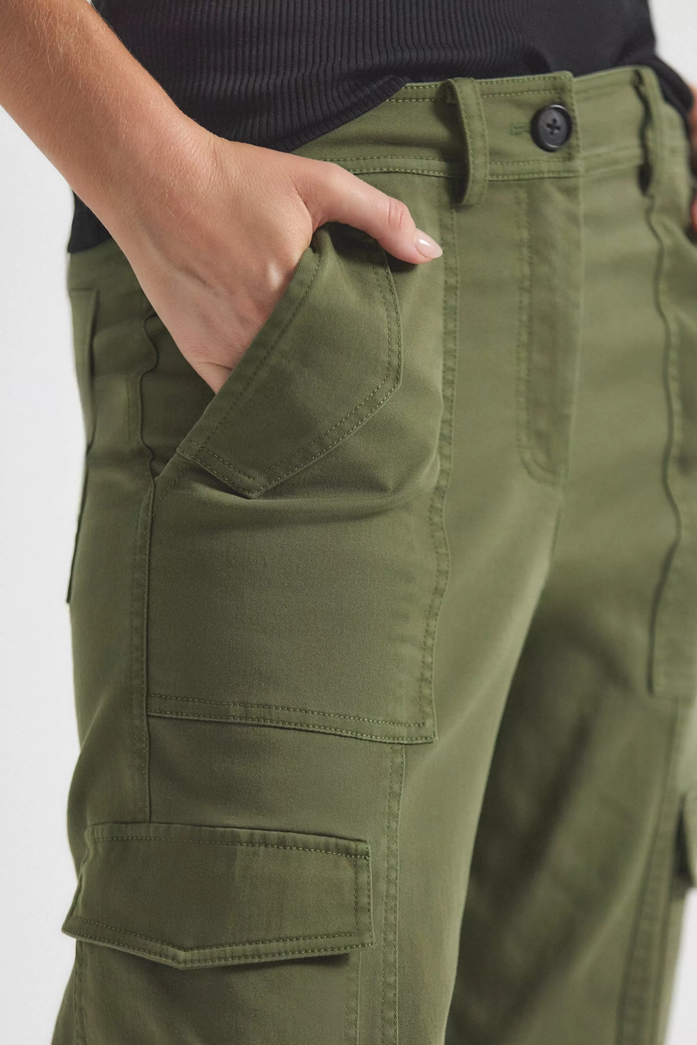 The Elian Utility Pant is crafted from a soft stone-washed stretch cotton twill. Based on a Derek Lam 10 Crosby signature silhouette, these pants are tailored with a relaxed fit, mid-rise and tapered leg. They feature utility pockets on the front and side and patch pockets on the back.Relaxed fit