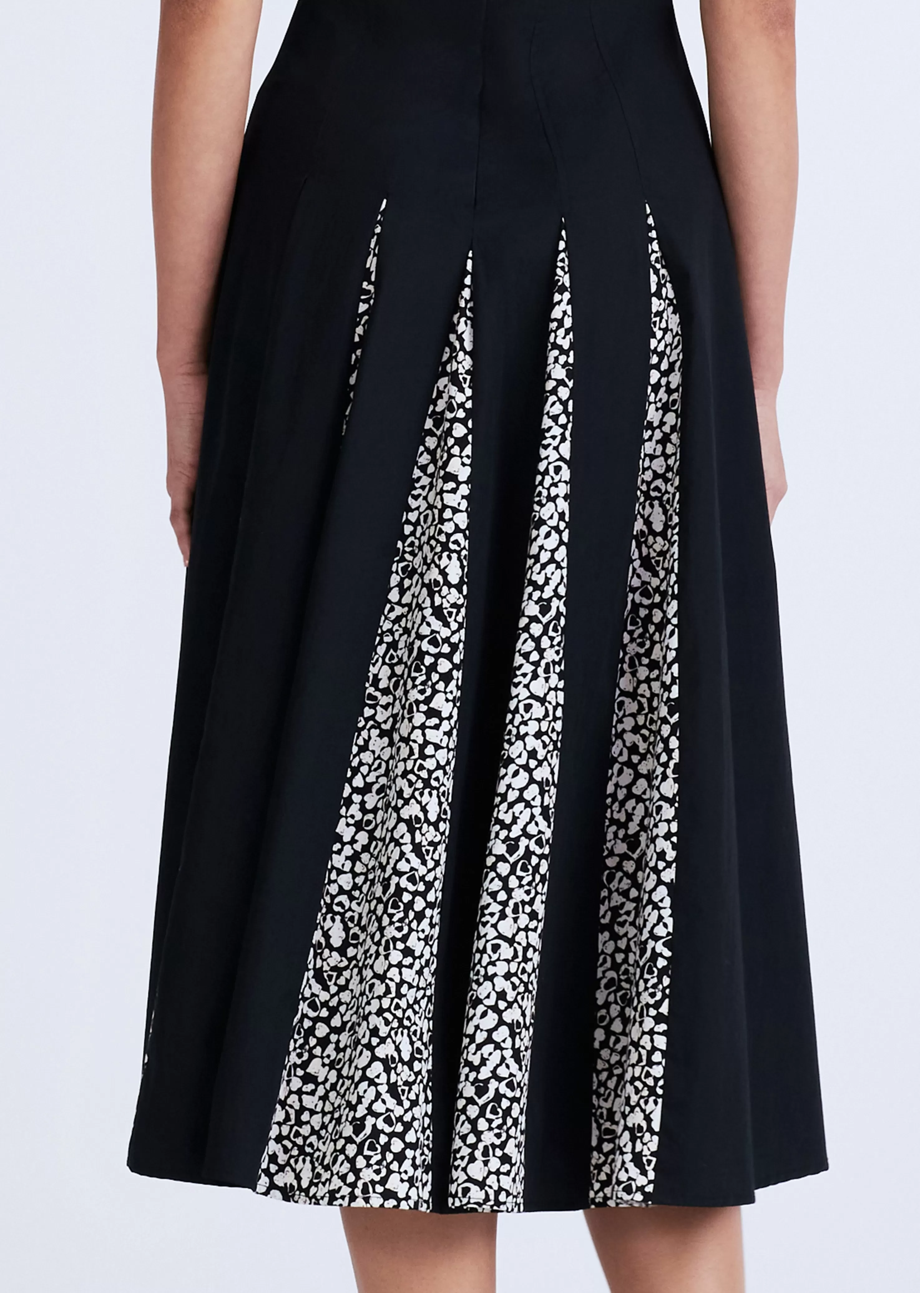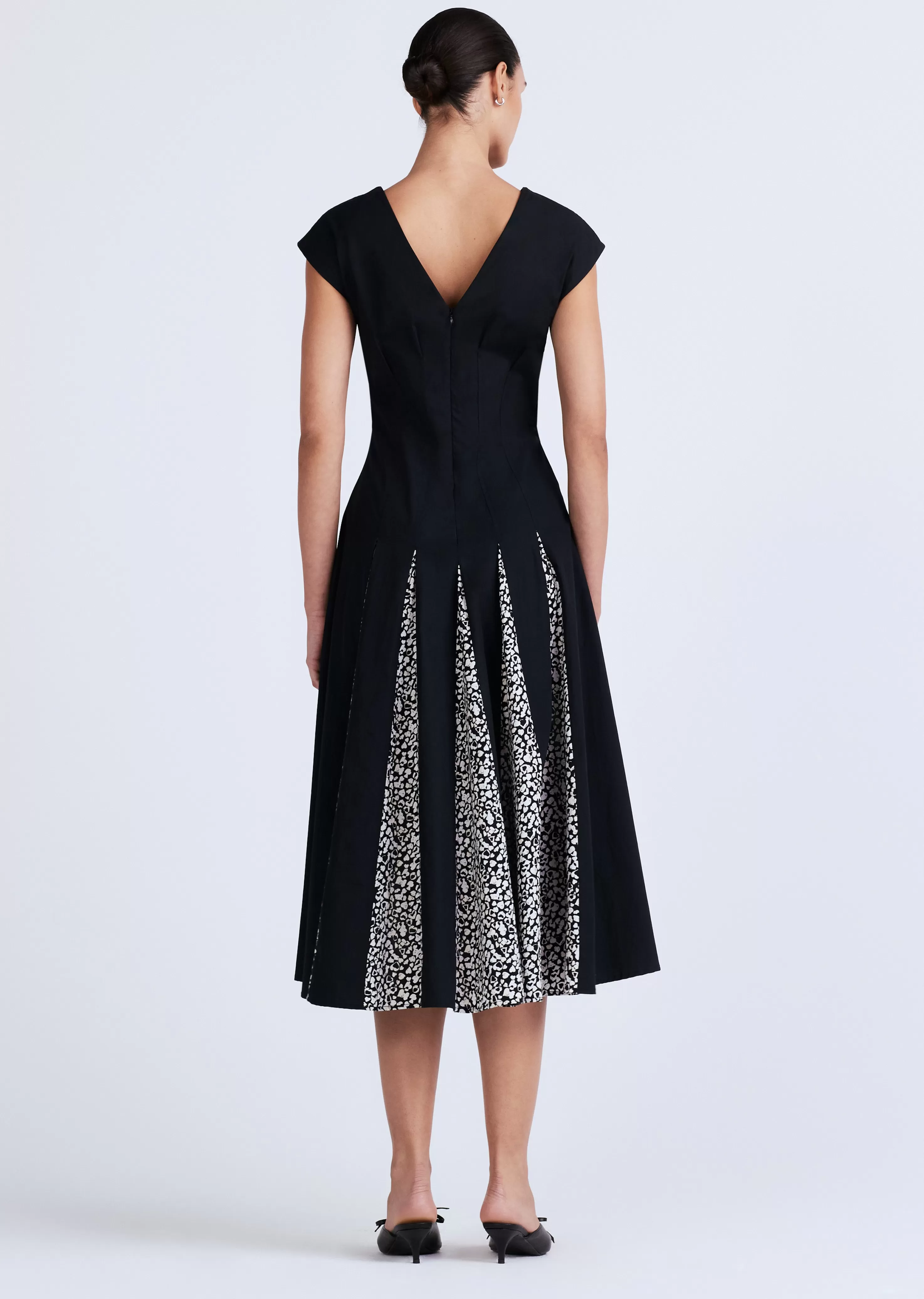 The Ella Sleeveless Godet Dress is a full-skirted style crafted from our Crosby cotton poplin. It features a fitted waist and special hand-drawn petal print. Finished with released darts on the bodice and back zipper.