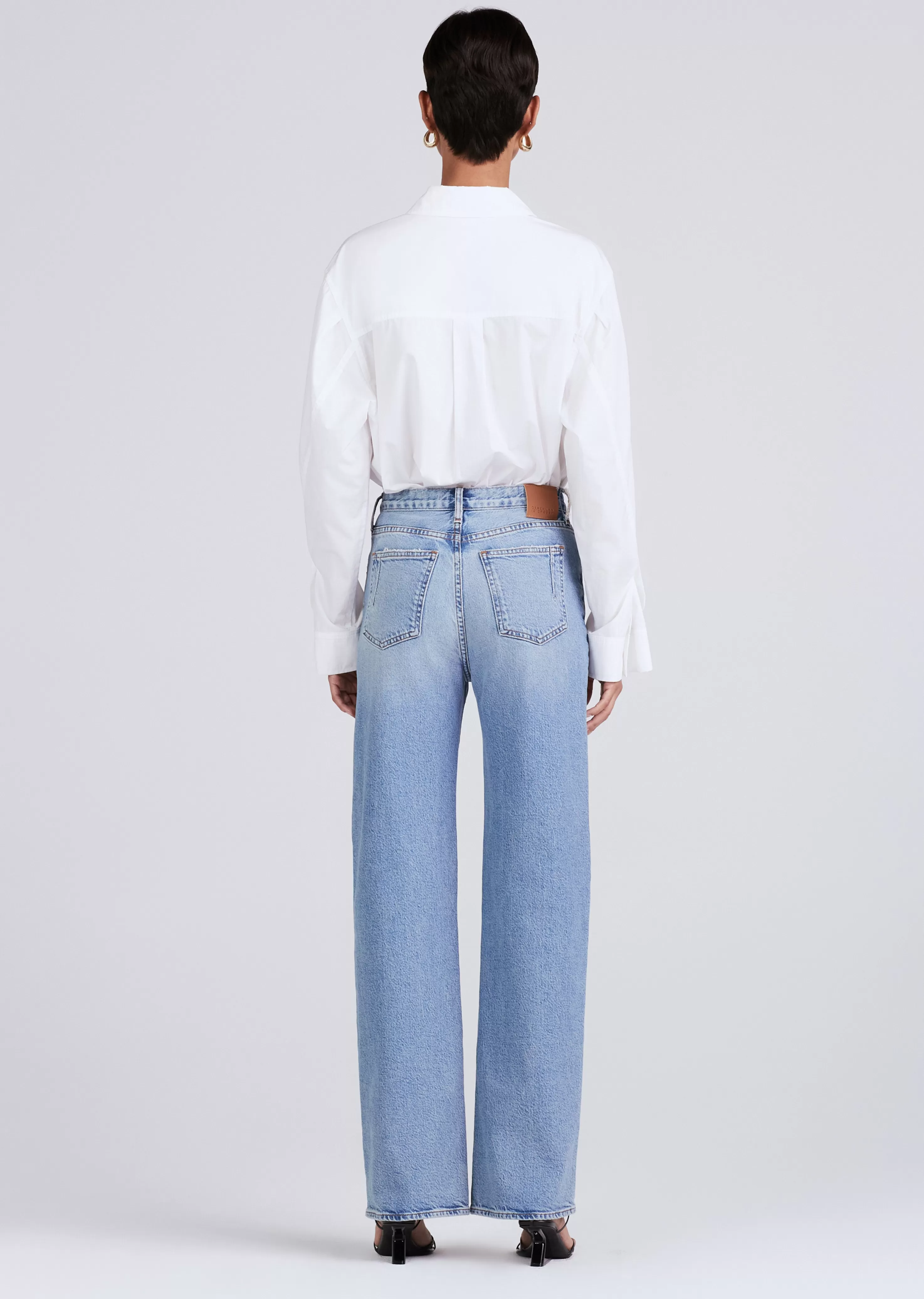 The Faye High Rise Tailored Wide Leg Jeans are a core style crafted from premium denim with a structured stretch fit. They hug the hips and open up into a straight, wide leg that gets its soft feel and easy drape from woven in tencel for extra comfort. Constructed in a classically bright, vintage inspired wash and a sophisticated rich dark wash with a soft sanding detail.