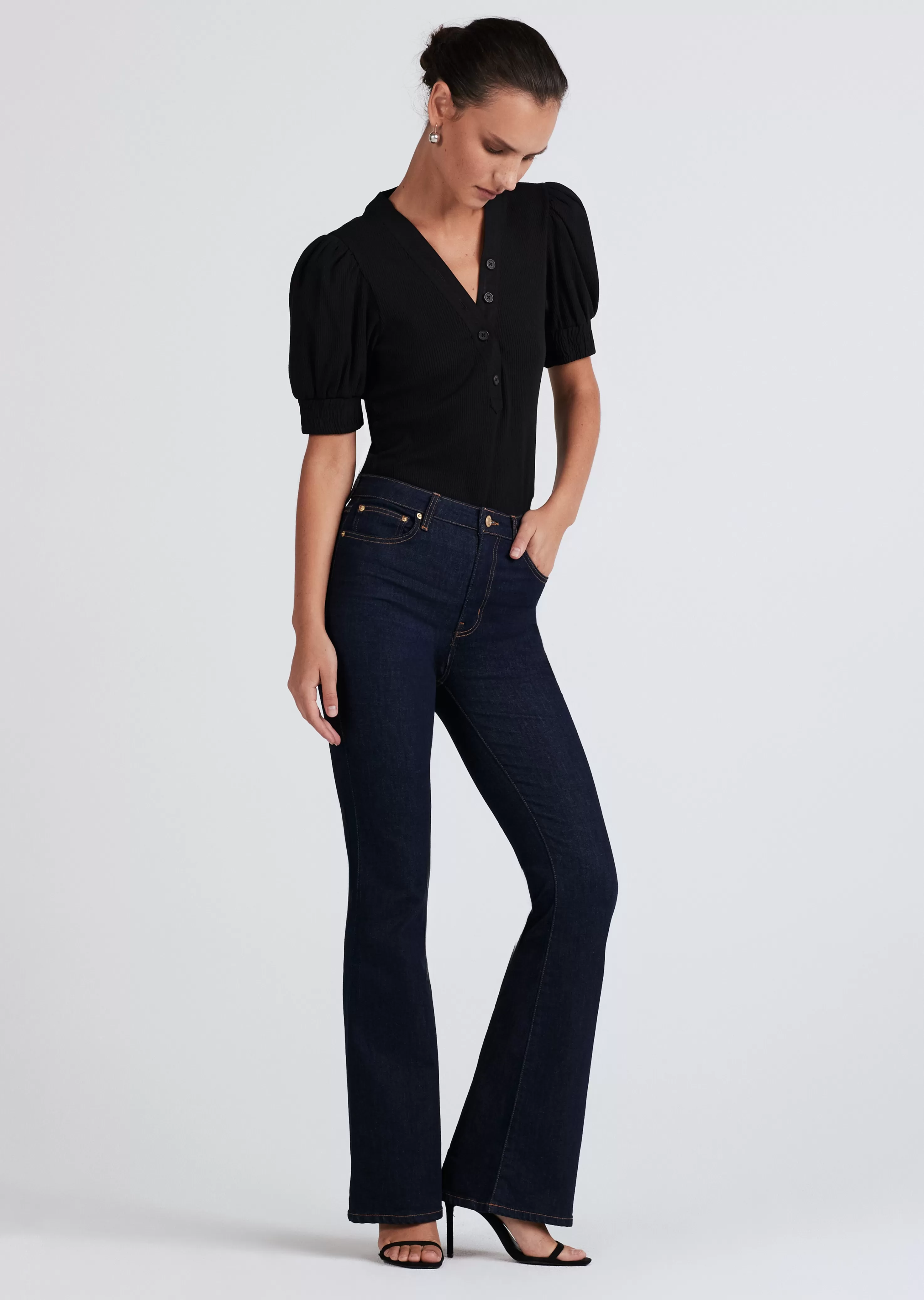 Derek Lam Heather V-Neck Puff Sleeve T-Shirt Black Hot