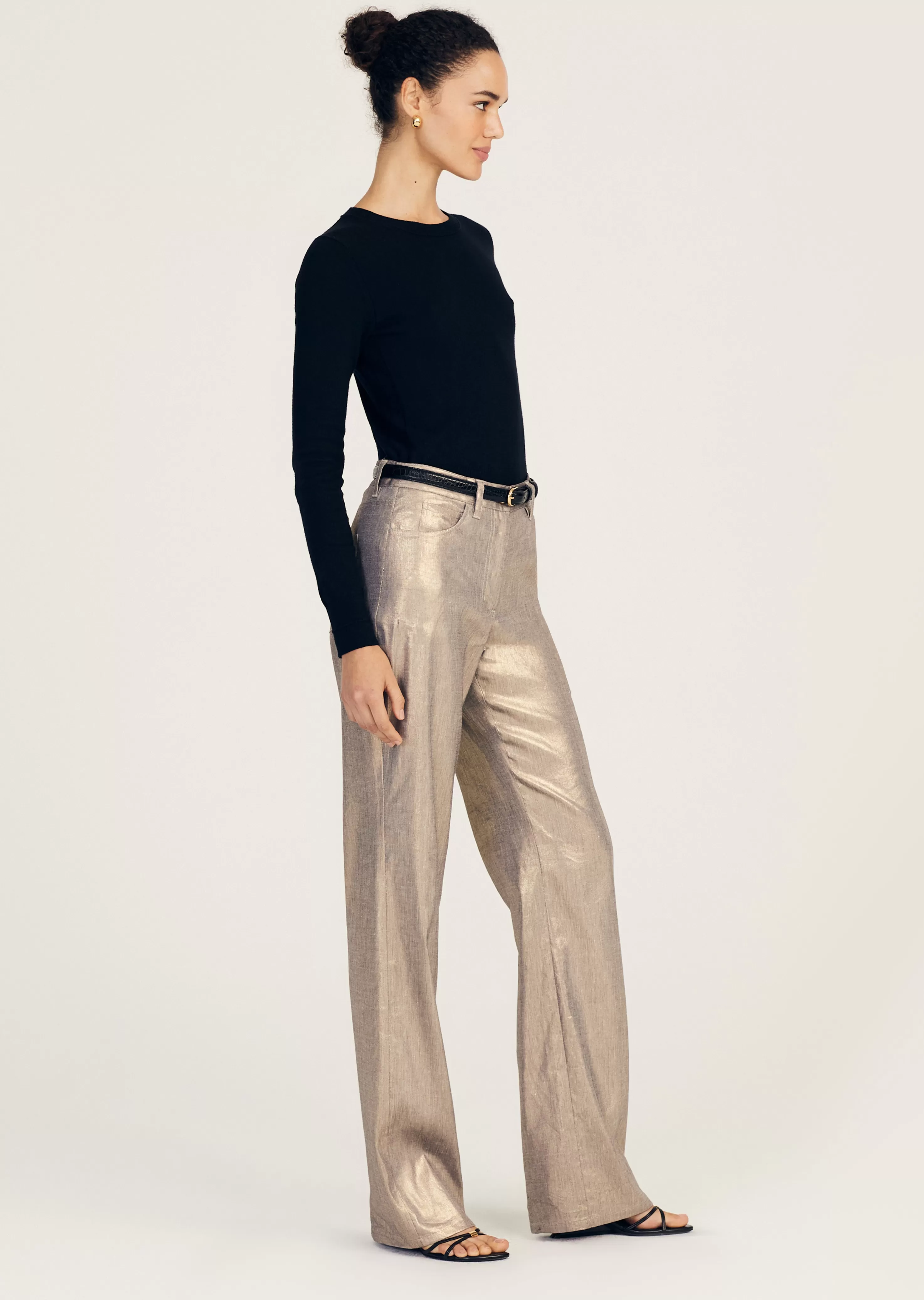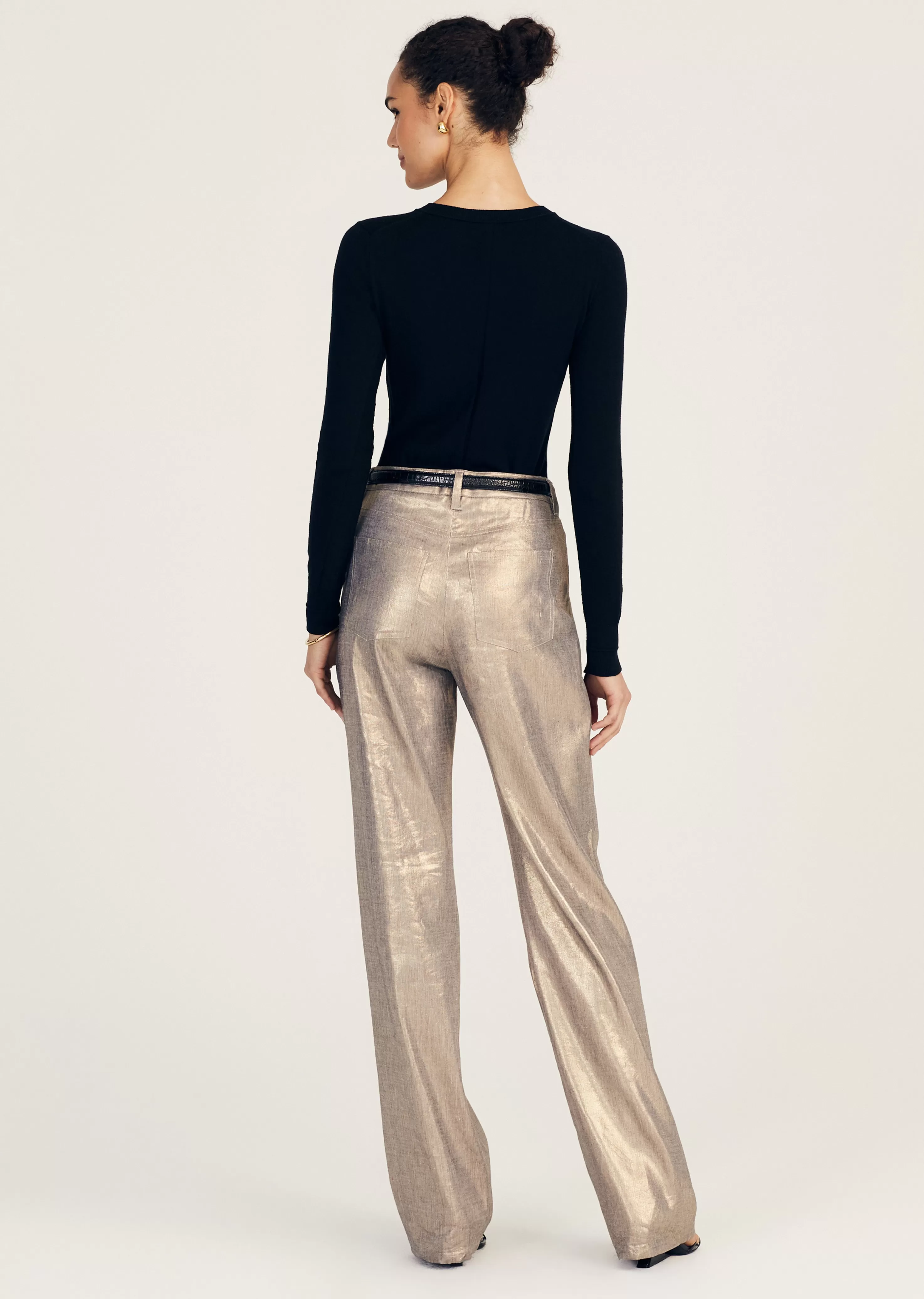 The Larissa 5 Pocket Trouser is a medium high rise style with a relaxed straight fit crafted from foiled linen. They fea…