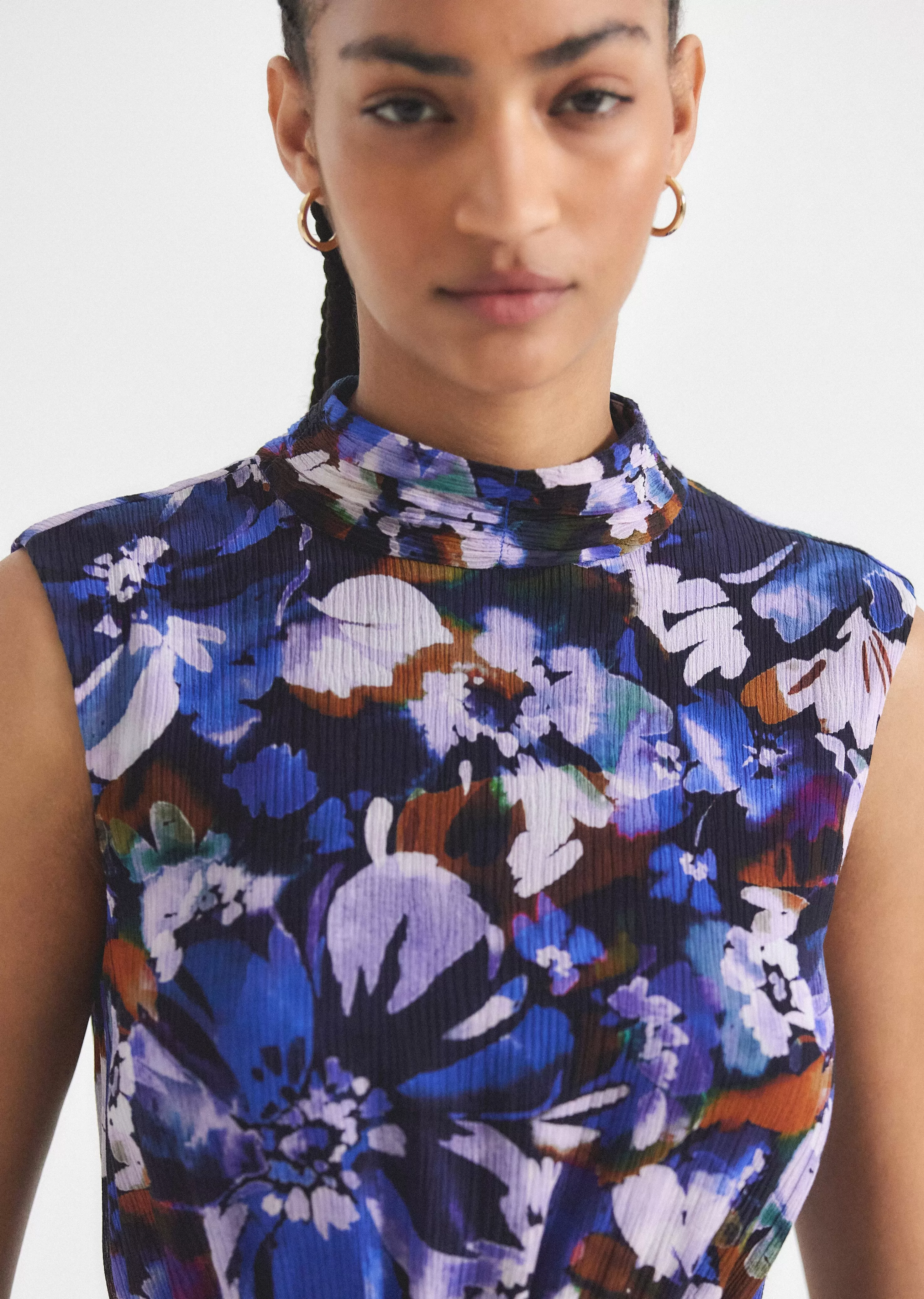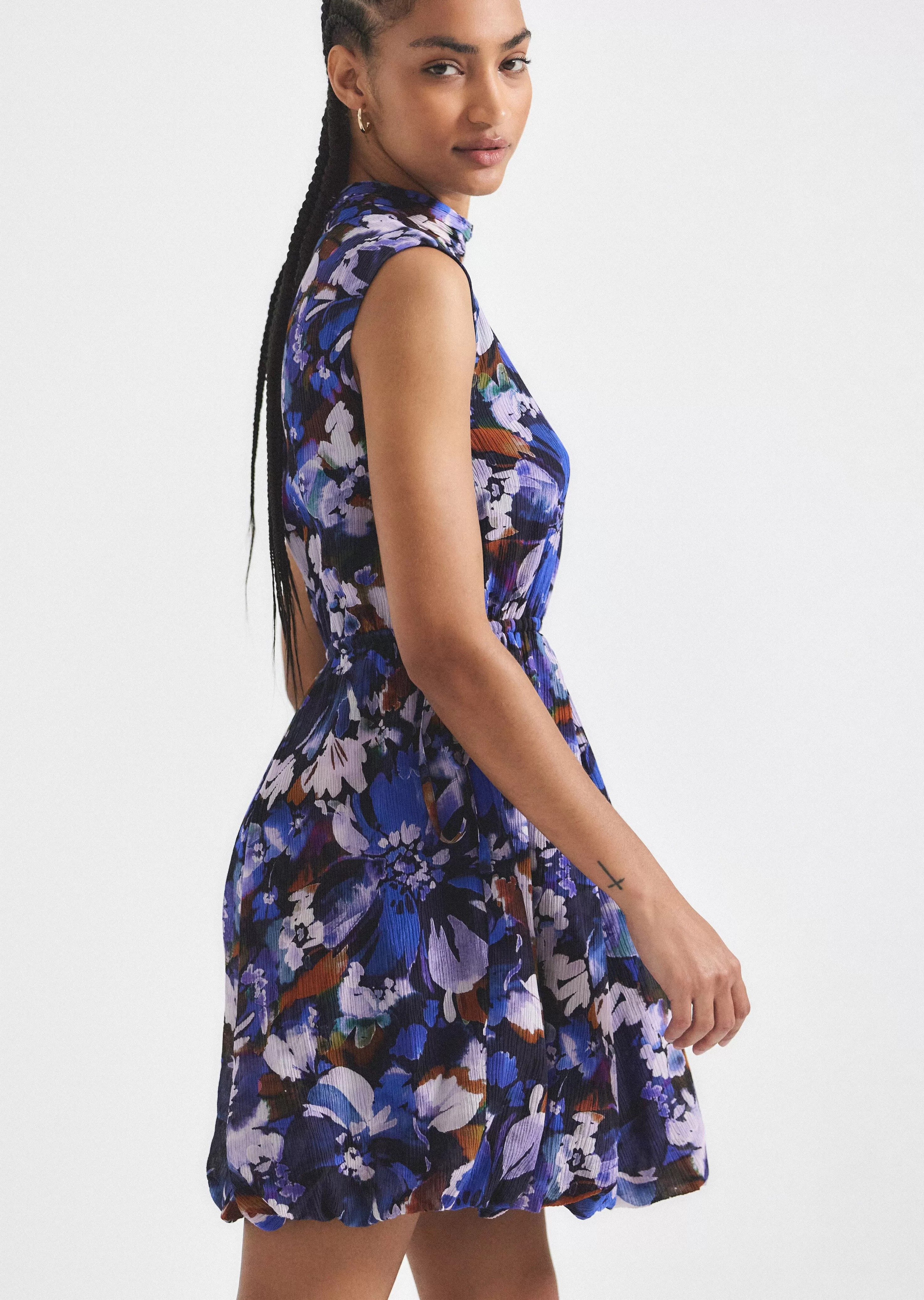The Laura Bubble Hem Dress is a mock neck style customized with a watercolor garden print. It features back buttons and …