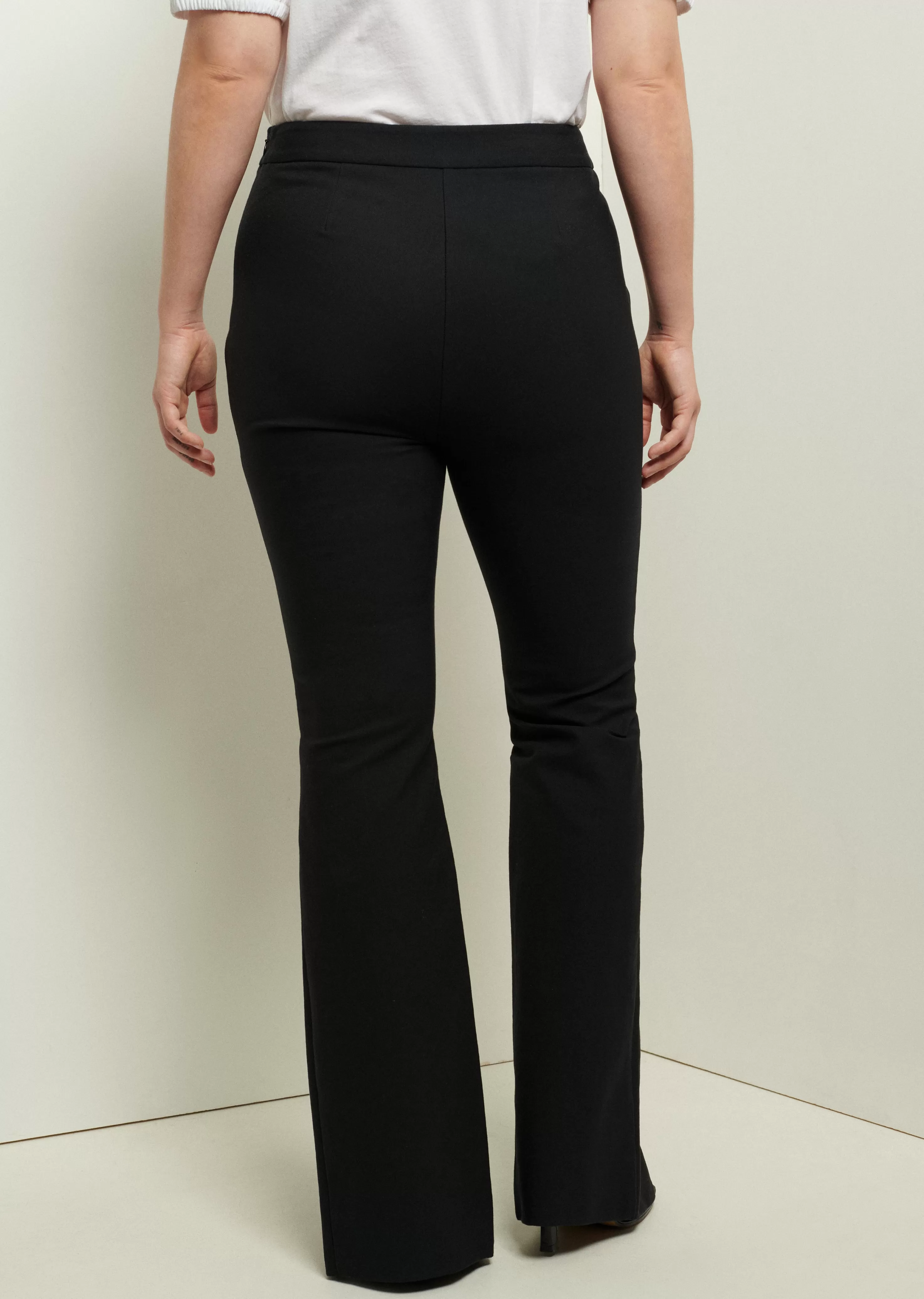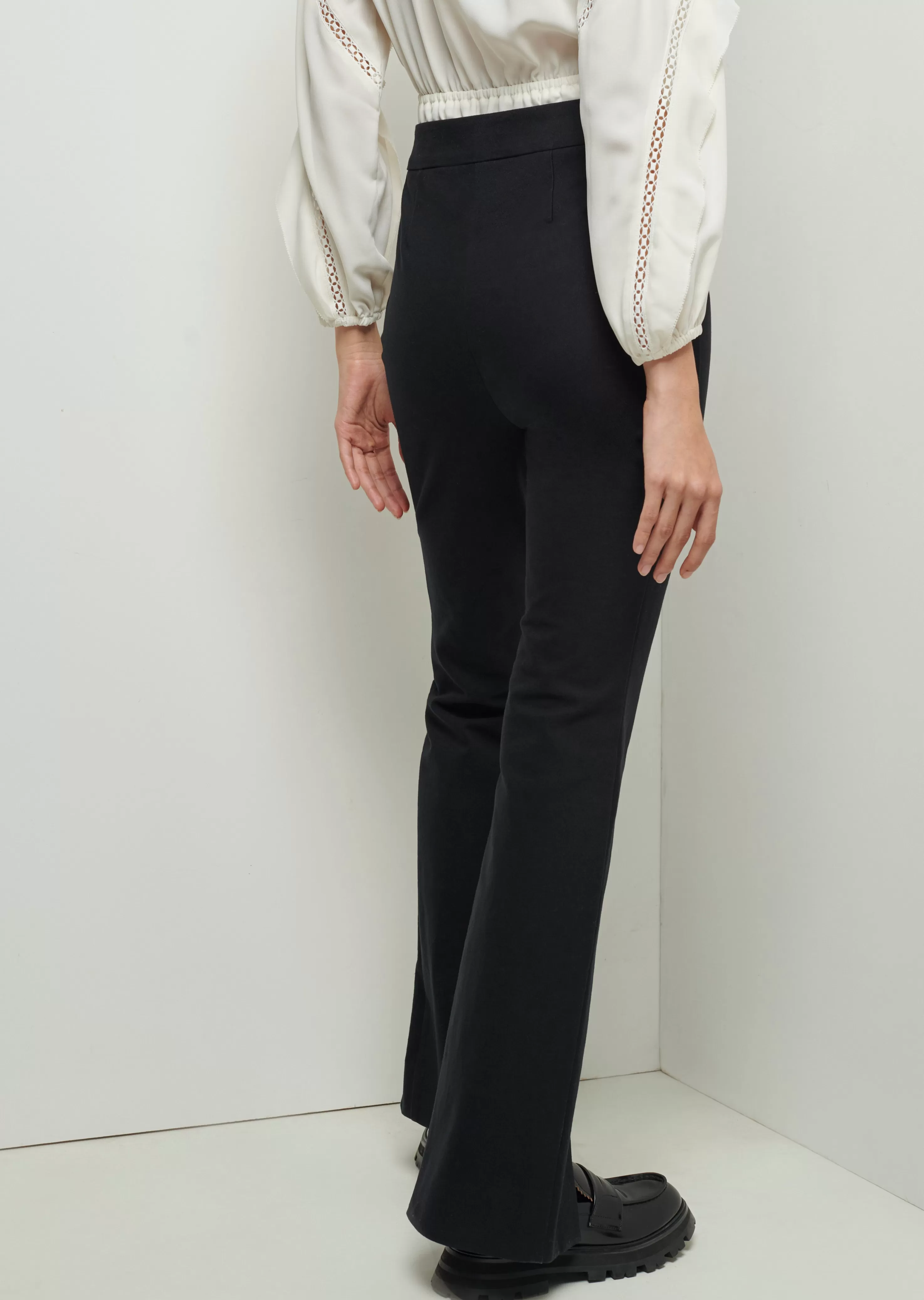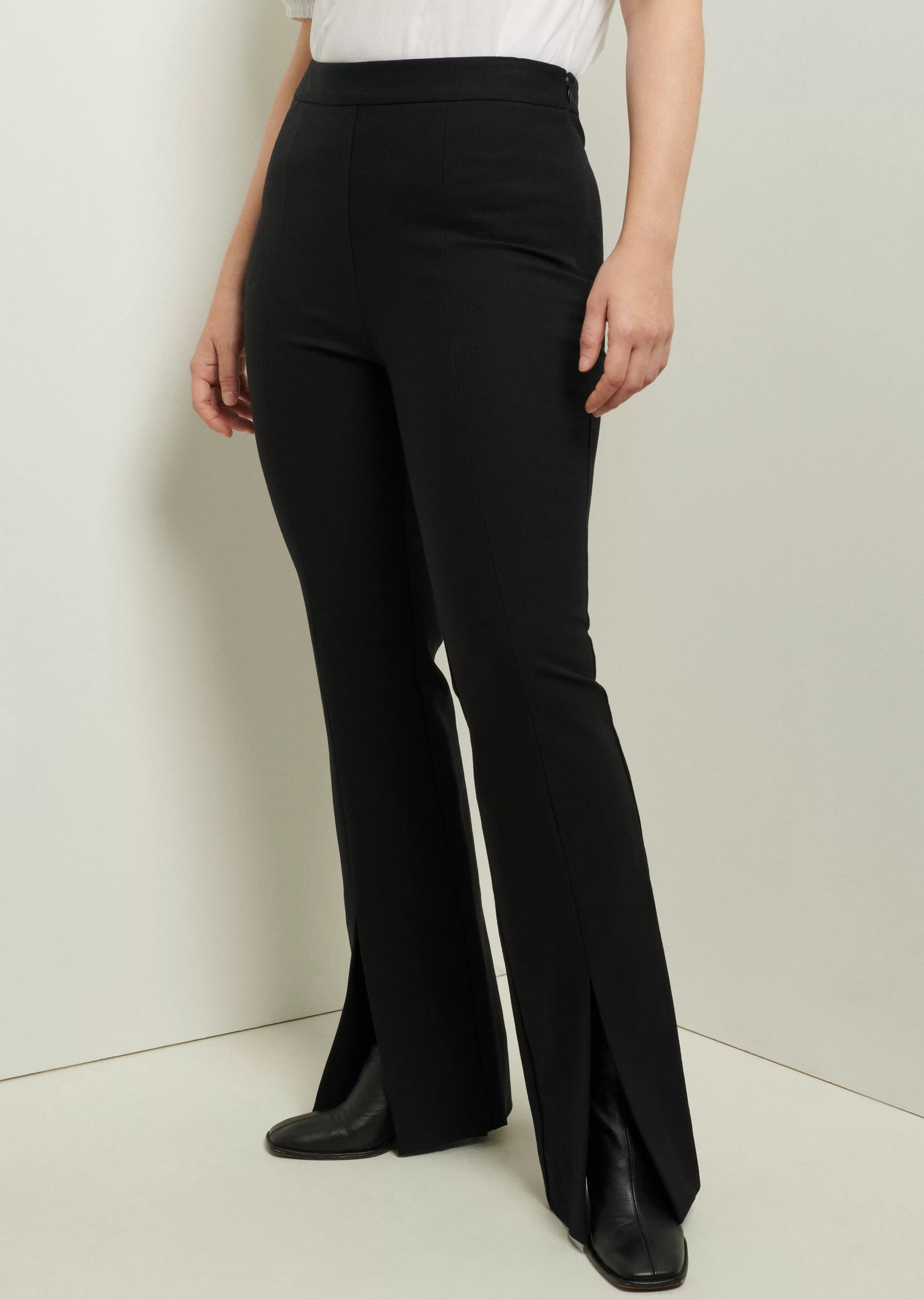 The Lucia Front Slit Trousers are crafted from our signature bi-stretch cotton Crosby twill. Cut with a high waisted silhouette and a slim fit, the long flared trousers offer a sleek and elongating look, with flattering slits at the hem. The comfortable versatile wardrobe staple is finished with a smooth waist and invisible side zip closure.This style is made in our best-selling Crosby Twill stretch cotton. The comfortable 2-way stretch cotton twill is wrinkle-resistant and lends itself to good stretch and recovery.