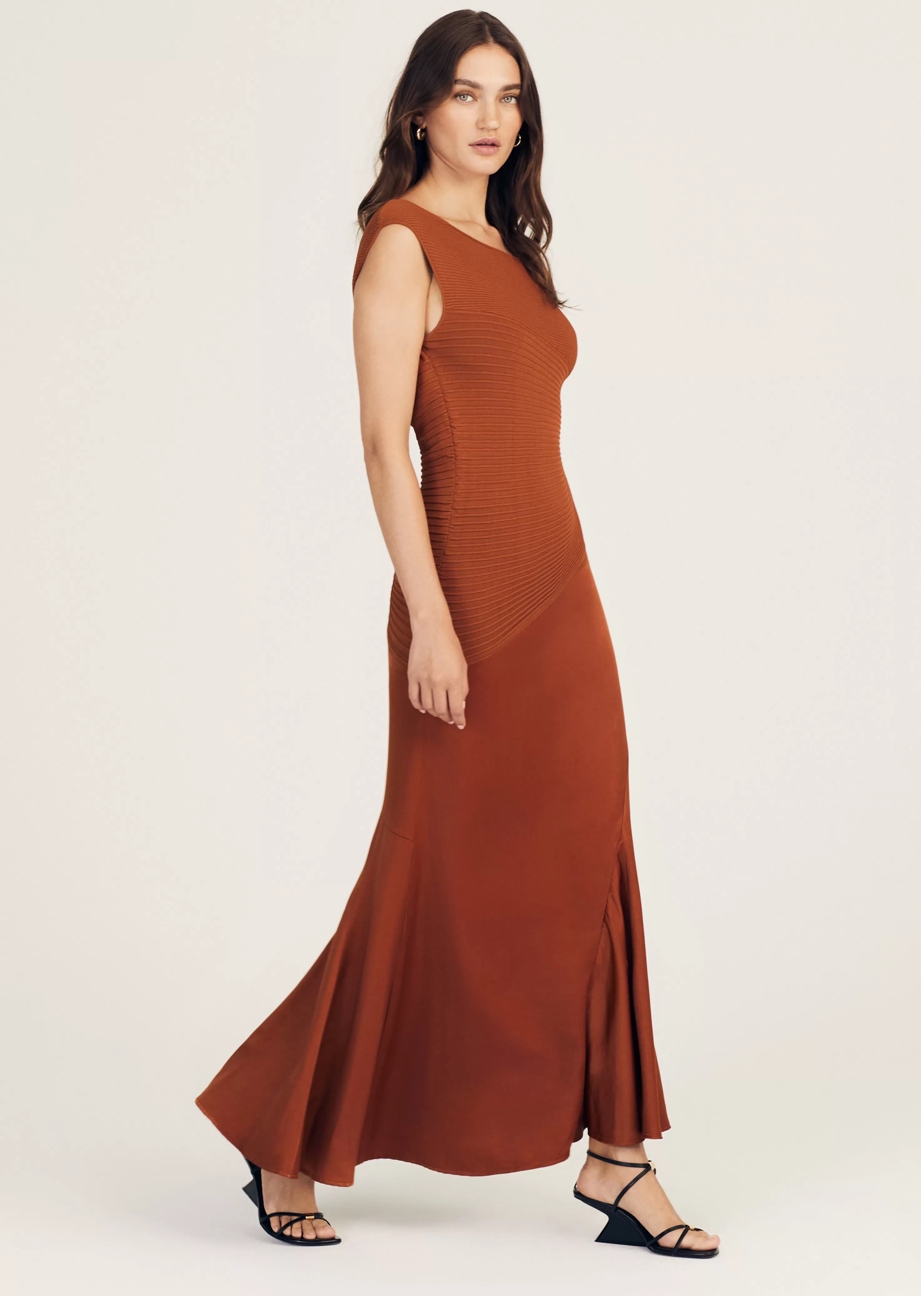 Derek Lam Madeline Mixed Media Dress Copper Hot