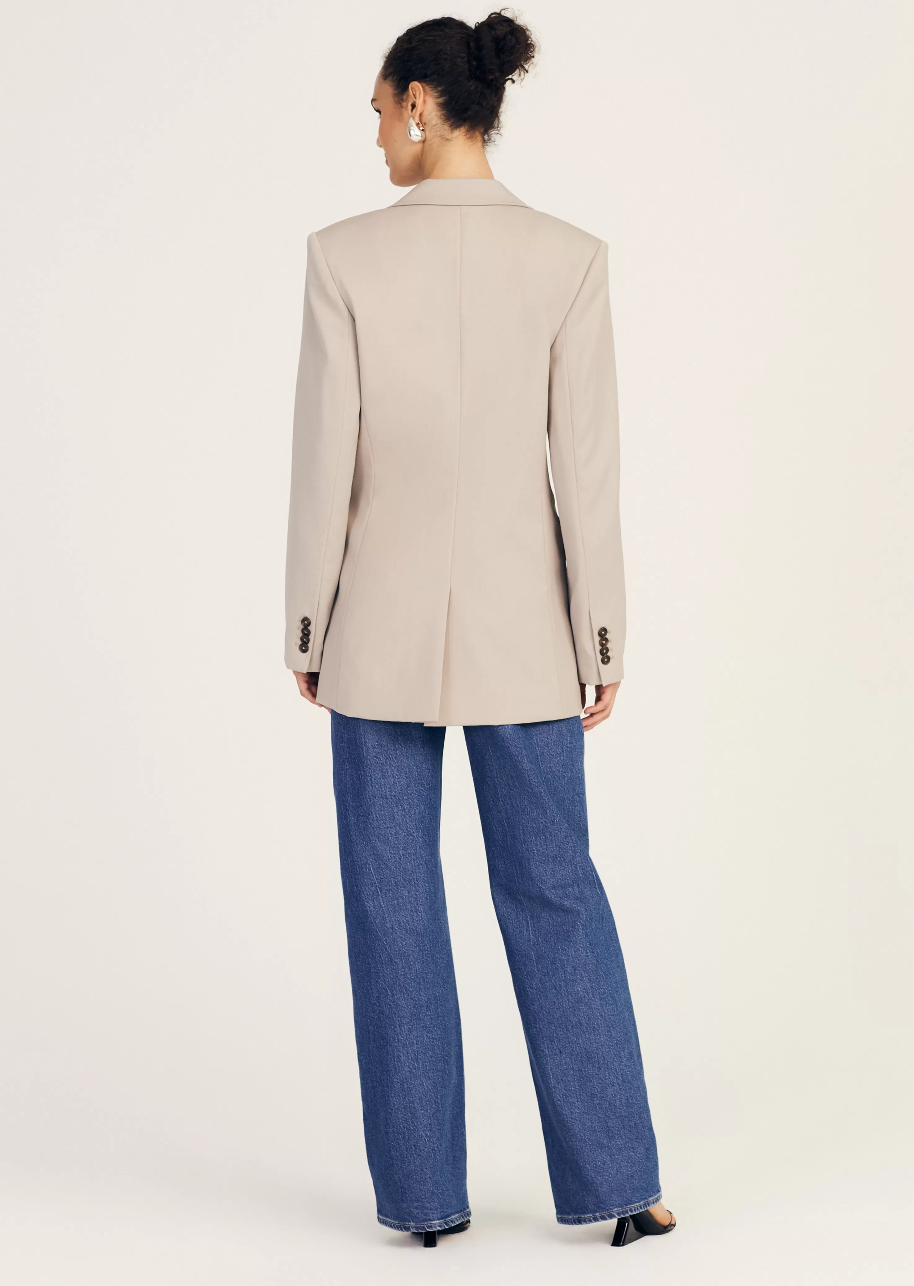 The Nico Single Breasted Jacket is a softly tailored style with peak lapels and flap pockets. It features a fully lined interior with front darts and a single button closure.