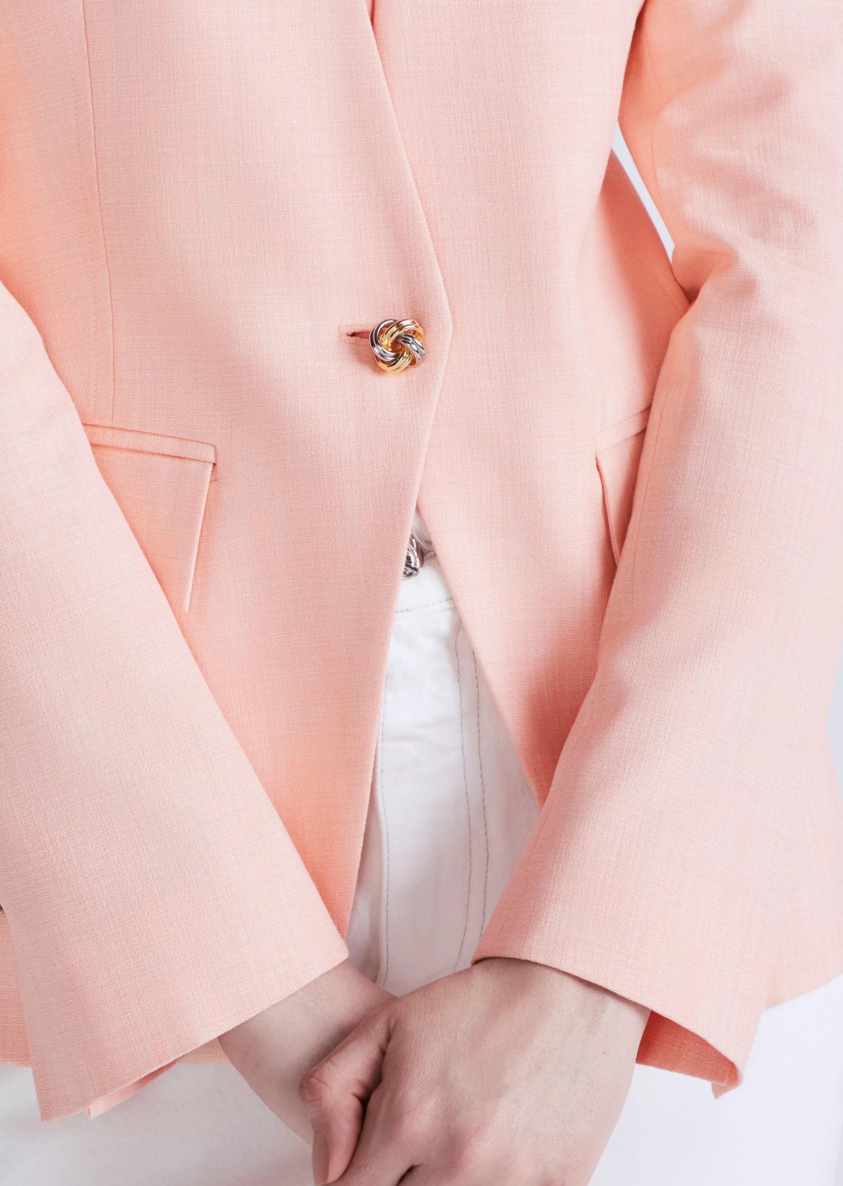 The Perez Single Breasted Jacket is a softly structured, featherweight blazer with a silver knot button. It features an …