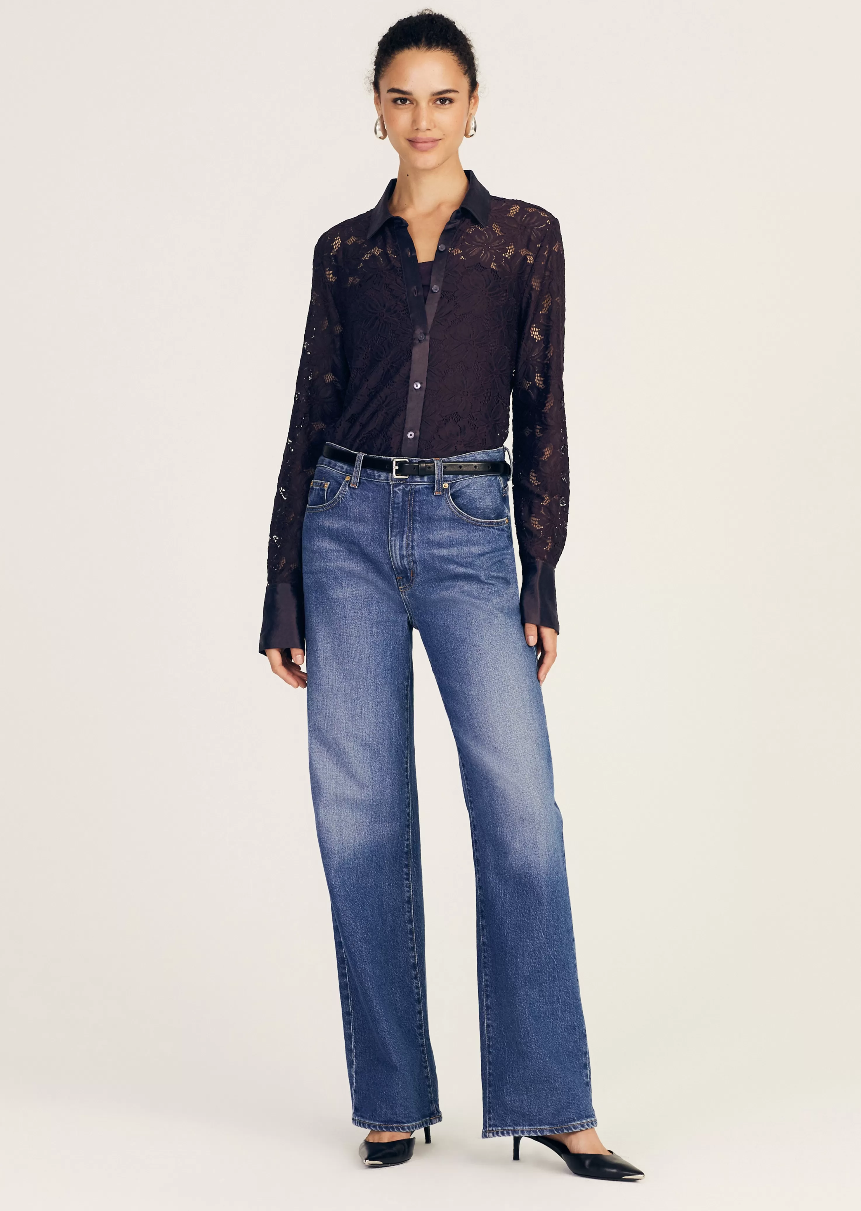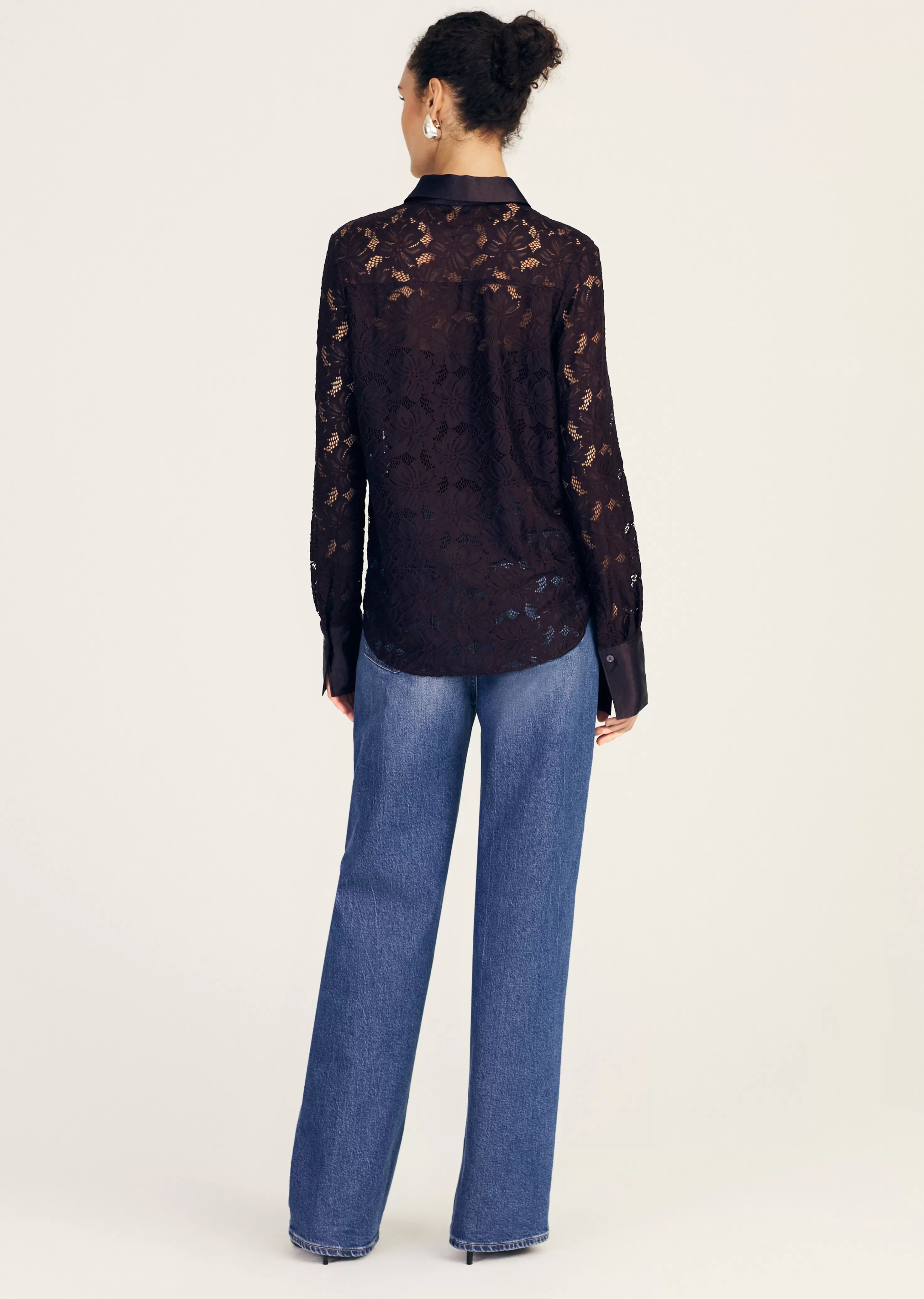 The Raissa Button Down Top is a relaxed-fitting, stretch style with a decorative floral feel. It features a contrast sa…
