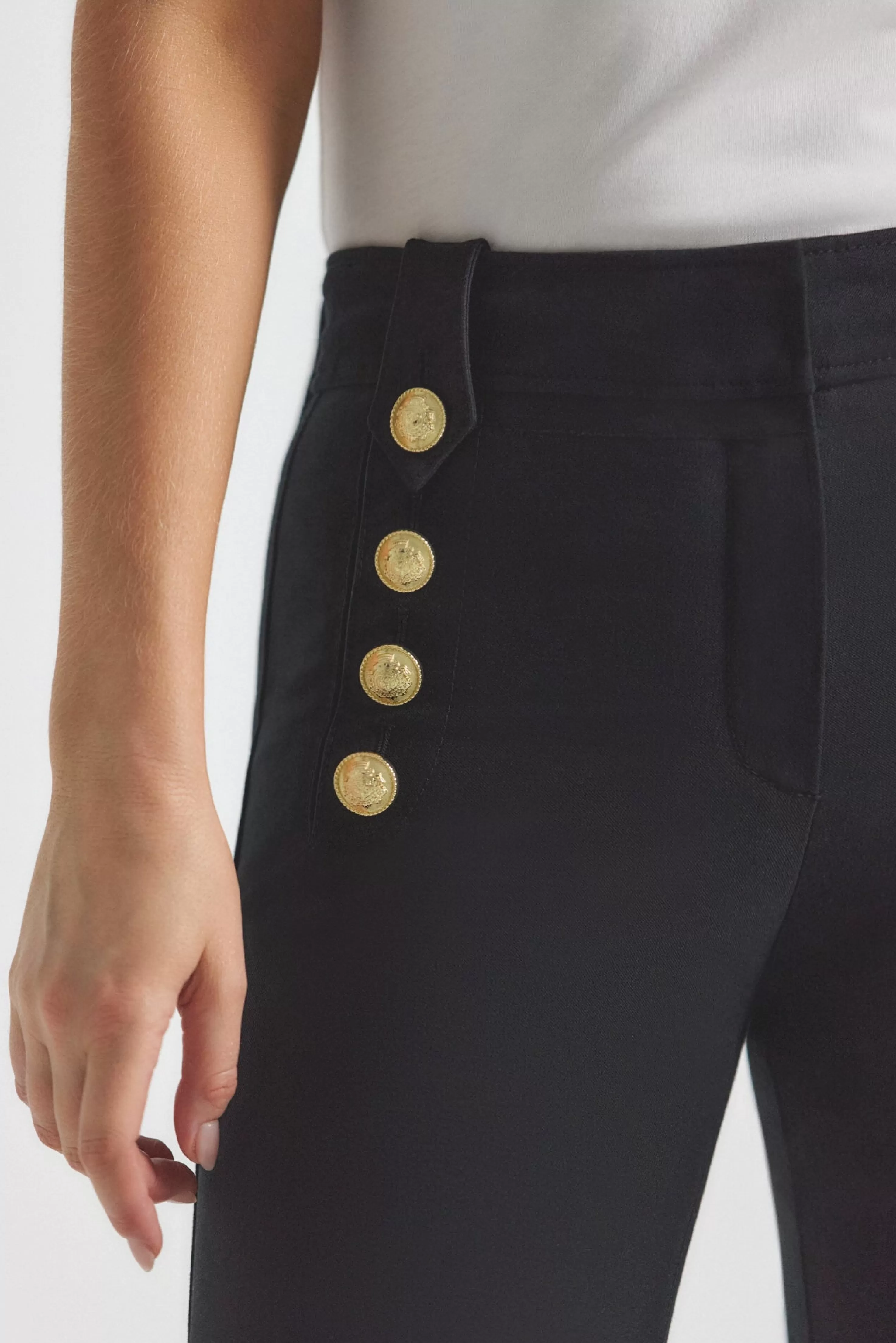 Our cult-favorite flared twill trouser with gold-tone sailor button details along the hips. Zip fly with button closure,…