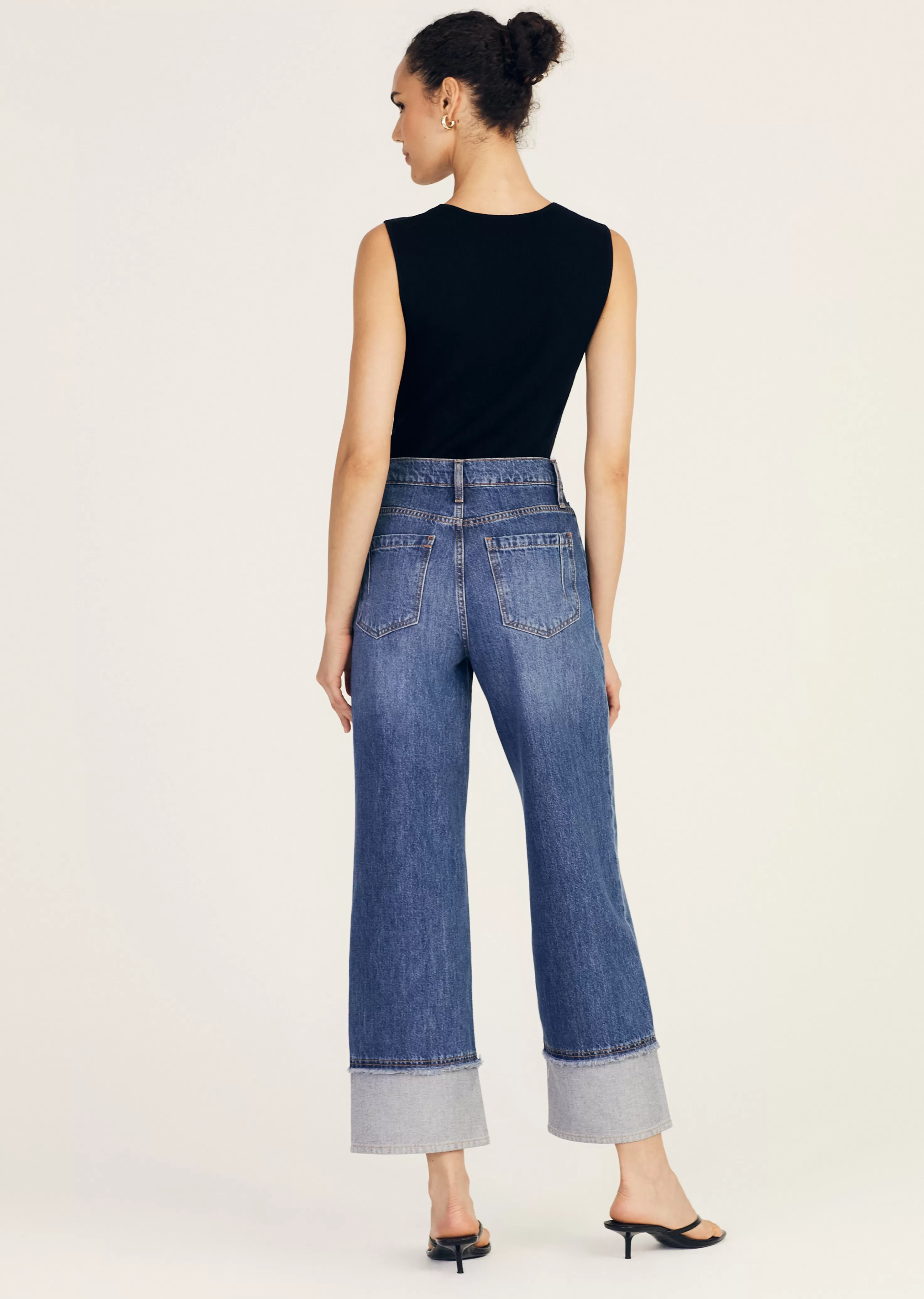 The Simona Cuffed Straight Leg is a high waisted rigid denim style crafted with a raw edge on the seams and a traditiona…