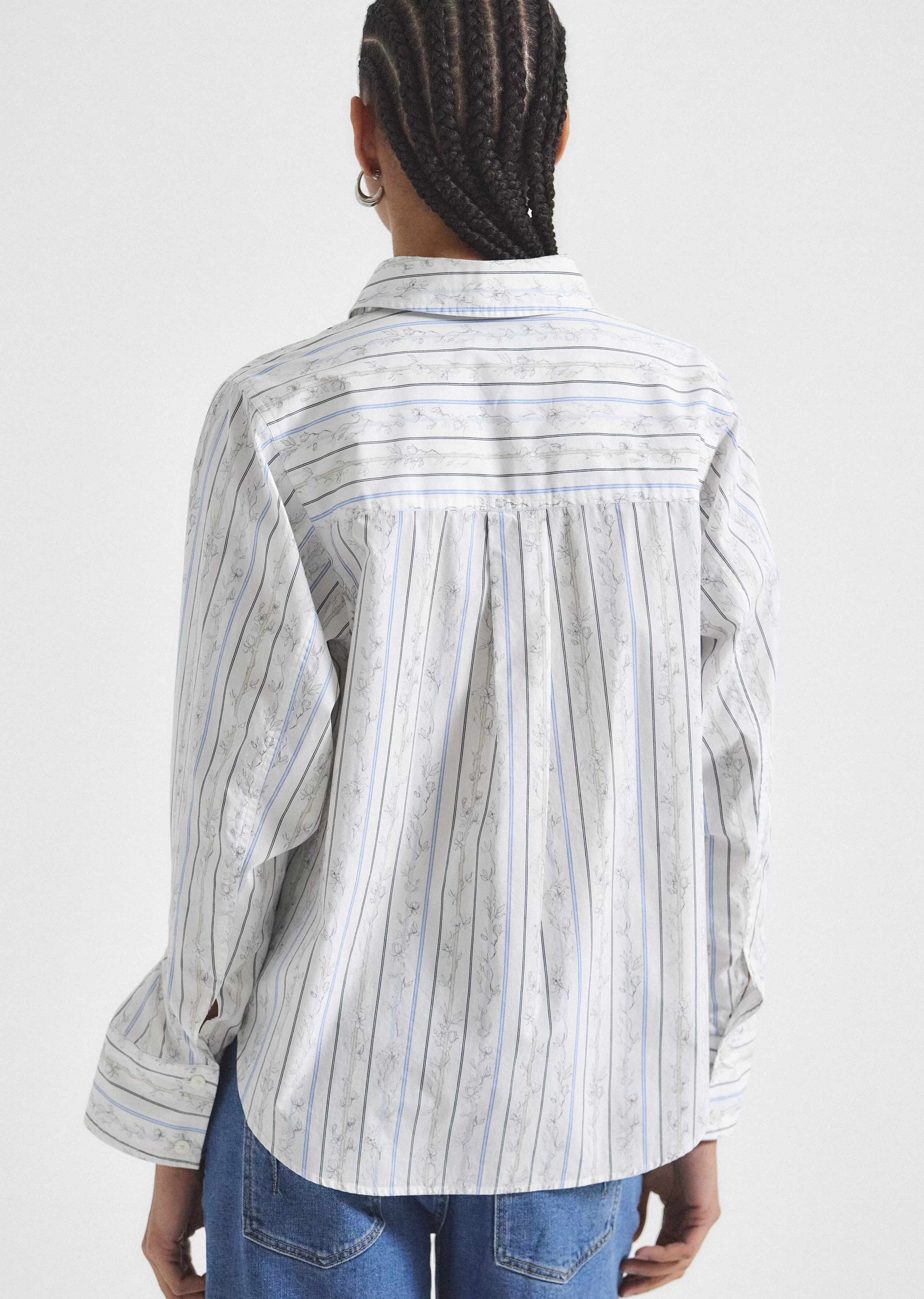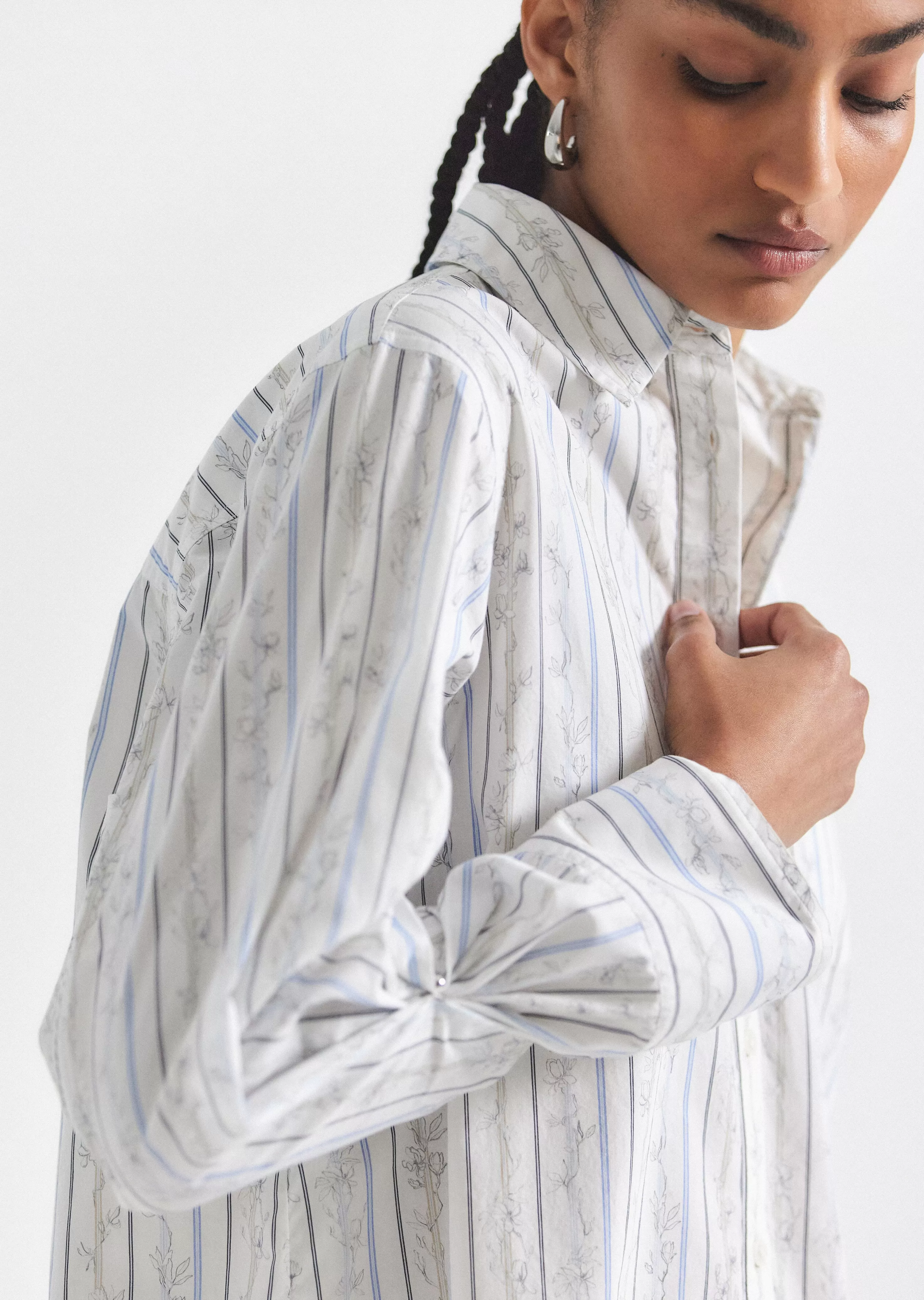 The Wesley Button Front Shirt reimagines a classic button shirt dress with a playful button sleeve detail. Crafted from crisp striped cotton shirting, this style features a spread collar with front button placket, front patch pocket and dropped shoulders. The crisp cotton poplin shirt also features tonal topstitching throughout and a rounded hem that’s longer at the back.